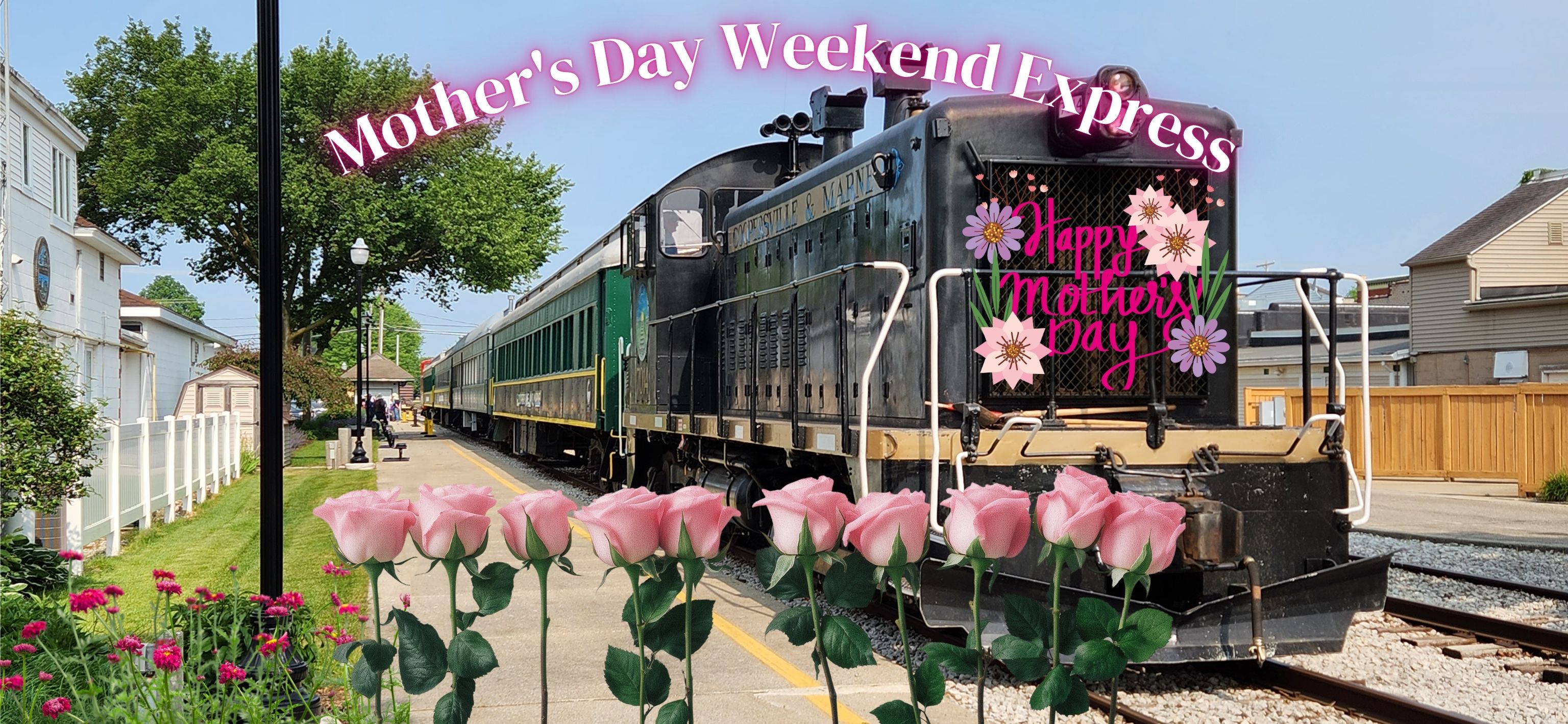 Celebrate Mother’s Day Weekend with a vintage train ride! Come ride with us on Saturday, and enjoy delicious Lemonade and Delly Belly Bakery cookies as we stroll down the tracks to Marne and back. Make a special card for mom or grandma while you ride along and she will receive a special gift too!